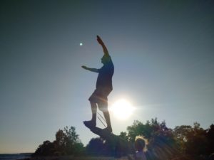 So, two things about this. If we can change state by what we do and what we think, we can change our emotional state using breathing techniques. Any anxiety attack can be neutralized in a few minutes by going for a jog. Activating the muscles and your breathing in sync forces the mind to follow suit. It’s the Bodymind again. Smile at yourself in a mirror and feel your mood elevate. Sitting in a lotus position and doing seven long AUM chants (Aaaaah-Uuuuuum-Mmmmmm) lasting as long as you can using a full breath is a great way to re-establish your breathing control through deepening. Since stress shallows your breathing, filling the lungs by expanding the sternum to its maximum (belly breathing) counters the tightening up tendency of shallow fear-breaths. Sitting in lotus position imposes physical mastery.